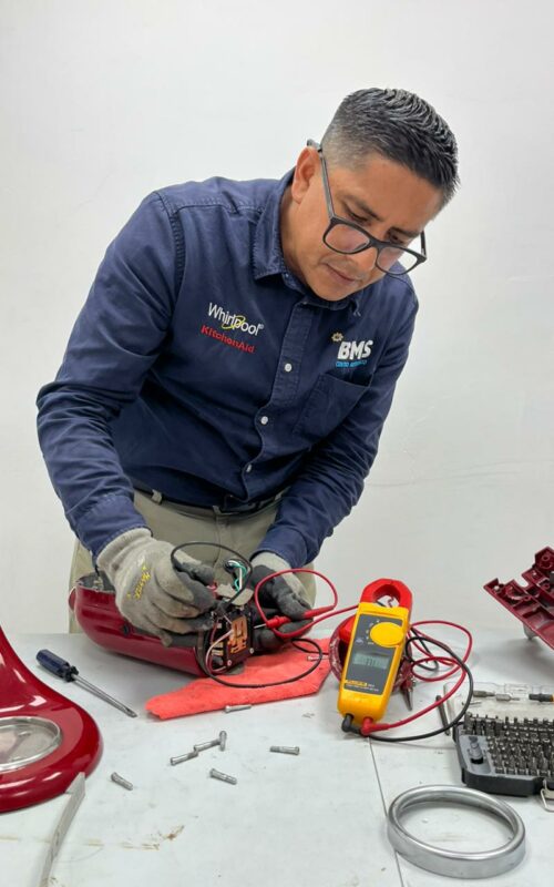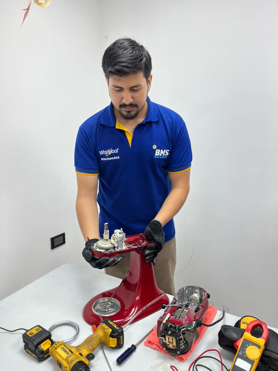 BMS es su Centro de Servicio Autorizado KitchenAid en Ecuador. Nuestra certificación directa por Whirlpool garantiza que su equipo es atendido con los estándares de fábrica. Utilizamos repuestos 100% originales y nuestro personal recibe capacitación continua de especialistas de la marca.